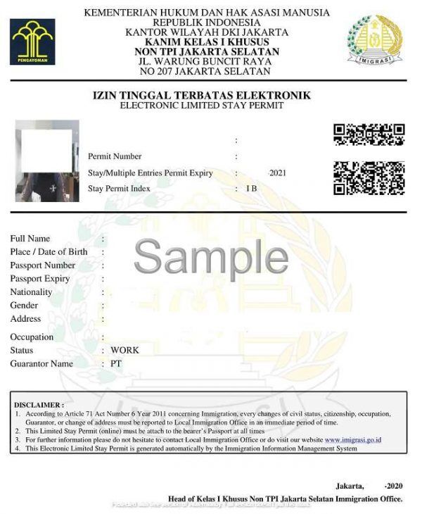 Izin tinggal terbatas bagi para tenaga ahli asing yang berlaku untuk jangka waktu paling lama 1 (satu) tahun.